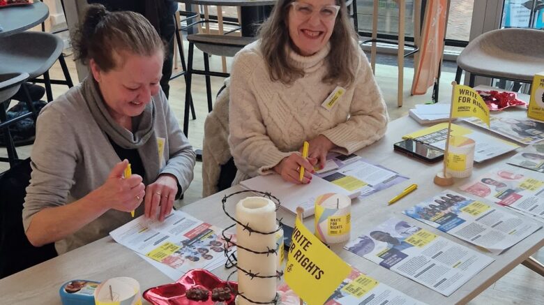 Ook dit jaar weer op de zaterdag voor 10 december – de Internationale Dag van de Mensenrechten – organiseerde Amnesty International In Veenendaal een gezamenlijke schrijfdag. De start in de Cultuurfabriek was om half elf met een welkomstwoord door groepsvoorzitter Mirjam Kole en optredens van een aantal plaatselijke dichters. Daarna waren er flink wat deelnemers die zich met een paar voorbeeldbrieven …